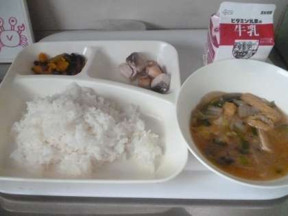 10月11日(金)の給食は、ごはん・牛乳・サケの塩焼き・みそ汁・カボチャのいとこ煮です。