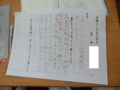 大造じいさんとがん 公開日 2024/10/15 更新日 2024/10/15 5年 5年1組では国語科「大造じいさんとがん」の学習が終わり、感想を出し合っていました。第1場面から第4場面に分けて感想を出し合っていました。大造じいさんと残雪とが出会う第1場面、死闘を繰り広げた第3場面についての感想が多かったようです。 いいね(0)