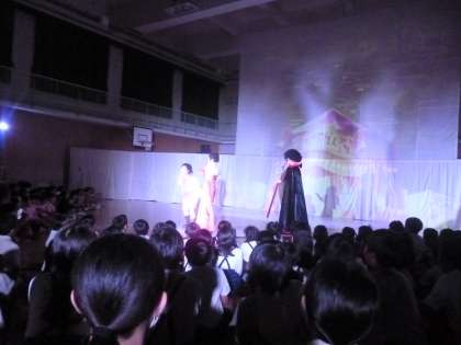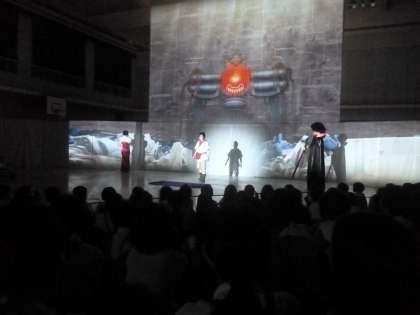 芸術鑑賞会(全学年) 公開日 2024/10/24 更新日 2024/10/24 その他 10月24日(木)3・4時限目、全学年に向けて芸術鑑賞会がありました。演目は「マグナとふしぎの少女」です。 ある日、壁の上から不思議な少女が落ちてきました。少年が話しかけても、少女は少年の知らない言葉、英語を話していました。壁の向こうには、どんな世界があるのか?不思議な物語劇を鑑賞しました。 舞台上で小道具を使わす、全て映像で処理していました。笑いあり、拍手あり、とても盛り上がりました。 いいね(0)