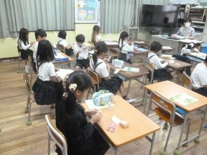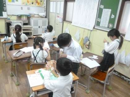 ランドセル キャメル 公開日 2024/10/28 更新日 2024/10/28 2年 2年1組では図画工作科の時間に、ペーパークラフトに取り組んでいました。今回は「ランドセル」を作ります。丁寧に切り取ってから、山折り・谷折りして組み立てますが、曲線の部分が難しいようです。糊付けしてでき上がった時には、達成した喜びにあふれていました。 いいね(0)