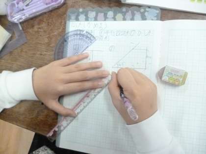 台形や平行四辺形の作図 公開日 2024/10/31 更新日 2024/10/31 4年 4年1組では算数科の時間に、平行な直線・台形・平行四辺形・ひし形を作図する練習に取り組んでいました。平行な直線が何組あるのか、向かい合う辺の長さは等しいのか、対角線はどのように交わるのか、各図形の性質を利用して、コンパスや三角定規を駆使してがんばっていました。 いいね(0)