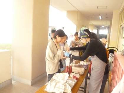 PTAの皆様が早い時間からご準備いただいて、作っていただきました。作りたての美味しそうな食べ物がお店に並んでいます。