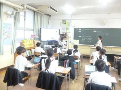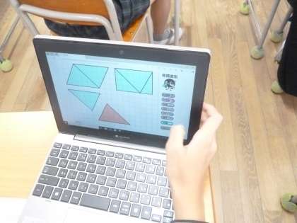 三角形の面積 公開日 2024/11/14 更新日 2024/11/14 5年 5年1組では算数科の時間に三角形の面積を求める方法を考えていました。前時に平行四辺形の面積の求め方を思い出しましたが、今回も「切る」「増やす」「動かす」方法を駆使すると求められる見通しになりました。 では、タブレットで操作して、三角形を長方形や平行四辺形に変化させていきました。大型テレビで考えを発表して交流しました。三角形の面積がいろいろな方法で求められていきました。 いいね(0)