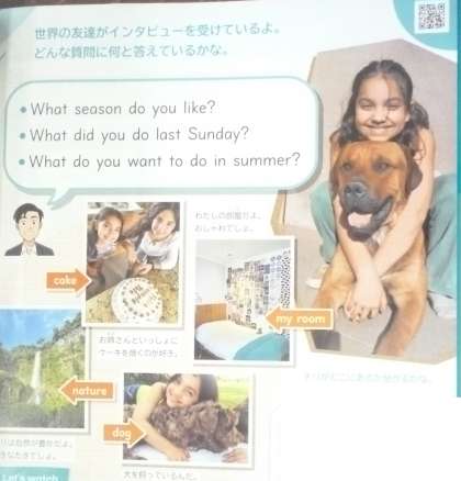 文のしくみを考えよう 公開日 2024/11/20 更新日 2024/11/20 6年 6年1組では英語科「文のしくみを考えように取り組んできました。日本語「わたしは魚を食べる。」は、英語になると「I eat a fish.」のように主語の後に述語が来るようです。 英語文のしくみを考えて、写真を見ながら「What season do you like?」などの質問を答えていく練習をしました。 いいね(0)