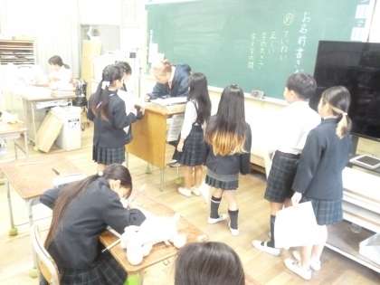 お名前書き初め 公開日 2024/11/20 更新日 2024/11/20 2年 2年2組では書写「お名前書き初め」に取り組んでいました。「ていねい」「優しく」「字の大きさ」「字と字の間隔」に気をつけながら、名前を練習します。来年の書き初めをする時期には、今日習ったことを発揮してほしいです。 いいね(0)