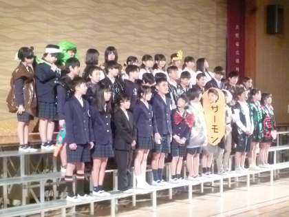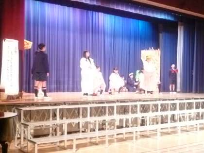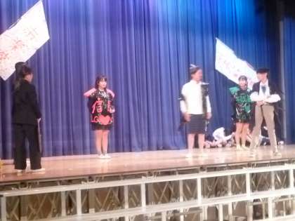 学習発表会6 公開日 2024/11/30 更新日 2024/11/30 6年 最後は6年生「もしも昔にタイムスリップしたら?」でした。授業中に起こった地震から、弥生時代や戦国時代にタイムスリップした設定で、時々歴史を少し歪曲して、観ている人を楽しませてくれました。 大きな学校行事「学習発表会」が終わり、2学期も残すところ後1か月を切りました。学習発表会で育った力を活かして、充実したまとめの時期を過ごしていきたいです。どうぞよろしくお願い申しあげます。 いいね(0)