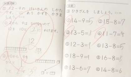 くり下がりのある ひき算 公開日 2024/12/06 更新日 2024/12/06 1年 1年生は算数科の時間に、くり下がりのあるひき算の練習プリントを答え合わせしていました。「12−9で、2から9は引けないので・・・。」「14−9=5です。」全員で答え合わせするのも慣れてきたようで、いいテンポで進んでいました。 くり下がりのあるひき算、しっかり理解できたでしょうか。 いいね(0)