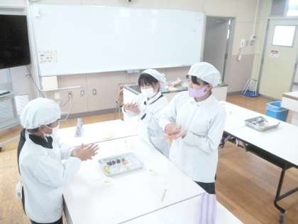 5年 和菓子を作ろう1 公開日 2024/12/12 更新日 2024/12/12 5年 5年生が和菓子作りに取り組んでいました。国語科「和の文化を受け継ぐ」で、和菓子作りの深い歴史や技術について触れました。今回は3色の生地で餡を包み込みます。生地を伸ばしたり、全体をラップでくるんで包み込むように丸めたり、和菓子職人の気分になれたでしょうか。 いいね(0)