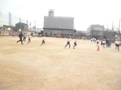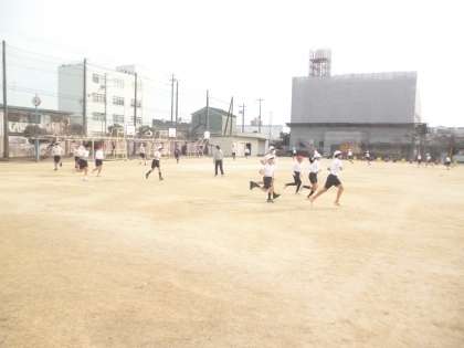 6年生は体育科の時間に持久走に取り組んでいました。5分間「ライラック」の音楽が聴こえている間、自分のペースで走り続けます。来週のマラソン週間に向けてがんばっていました。