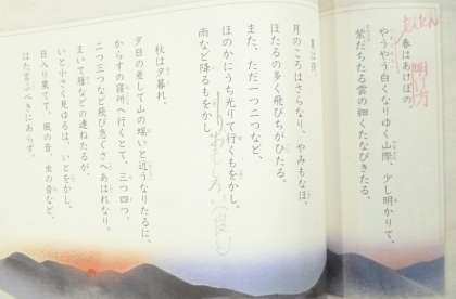 5年2組では国語科「いにしえの人をえがく世界」を学習していました。教科書には清少納言の「枕草子」が載っていました。読んでみて、どれくらい「いにしえ」を感じることができたでしょうか。まずは「をかし」など古語の意味を考えていました。「お菓子」ではないようです。