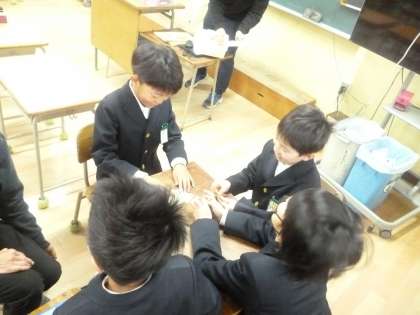4年 百人一首を楽しもう 公開日 2025/01/14 更新日 2025/01/14 4年 4年1組では国語科「百人一首を楽しもう」を学習しています。本時では3〜4人一組になって、実際に百人一首に取り組んでいました。先生が上の句から読んでいきます。しっかりと覚えている児童は、下の句を聞く前に札を取れるようです。10枚中、8〜9札取った児童もいました。 では、グループを入れ替えて2回戦です。 いいね(0)