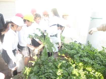 5年 ダイコンの収穫 公開日 2025/01/15 更新日 2025/01/15 5年 5年生がダイコンを収穫しました。日当たりがあまり良くなくて少し小さめなので、一人2本収穫しました。子どもたちは、大きなダイコンを引き抜こうとねらいを定めて、力いっぱい抜いていました。普段できない体験に、子どもたちは大喜びです。地域の方、ありがとうございました。 ※この日、1年生もダイコンを収穫しましたが、写真が獲れませんでした。申し訳ありません。 いいね(0)