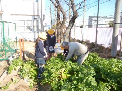 4年 ダイコンの収穫 公開日 2025/01/16 更新日 2025/01/16 4年 4年生がダイコンの収穫をしました。腰を落として、思いっきり力をいれて引き抜いていました。子どもたちは皆よろこんでいて、家へもって帰って、どんな料理を作ってもらえるのか楽しみなようです。 いいね(0)