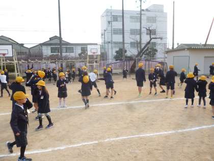 1月23日(木)児童集会は「宇宙人鬼ごっこ」をしました。子どもたちが「頭星人・肩星人・耳星人・お腹星人」4つのグループに分かれます。それぞれの場所を片手で押さえながら、違う星人を追いかけます。タッチされたら、相手の星人に変身しなければいけません。このように自分の星人を増やすようにして、最後にいちばん多かった星人の価値になります。