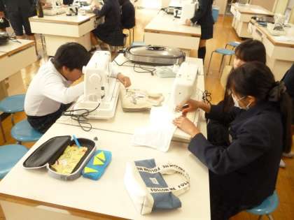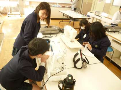 6年2組では、家庭科の時間に在校生へプレゼントする雑巾をミシン縫いしていました。卒業の記念に贈る雑巾、心を込めて縫っていました。