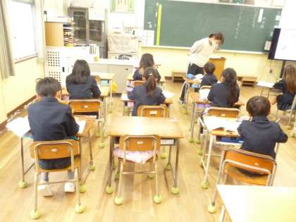2年2組では国語科「お手紙」を学習していきます。まず物語を読んだ後、「すきなところ」「ふしぎに思ったところ」をノートに書き出していました。カエルが2匹並んで座っている場面が2か所あり、挿絵にも特徴があります。がま君の家にお手紙が着くのに4日かかるのが不思議に思った子が多かったようです。