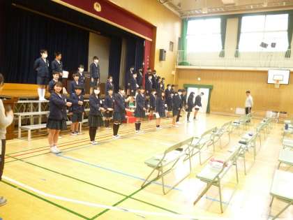 6年 卒業を祝う会の練習 公開日 2025/03/04 更新日 2025/03/04 6年 6年生は講堂で「卒業を祝う会」の練習をしていました。在校生が卒業をお祝いする出し物をした後に、感謝の言葉を呼び掛けたり、お礼の歌「変わらないもの」を合唱したり、プレゼント「手作りぞうきん」を手渡したりします。この井、行動は冷えていましたが、卒業間近の6年生、がんばっていました。 いいね(0)