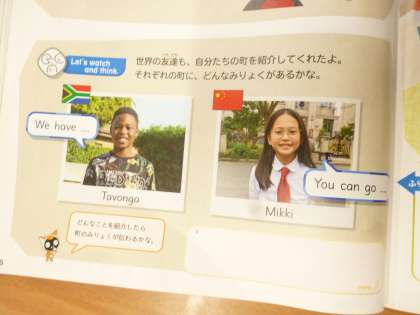 5年1組では英語科「自分の町の魅力を伝える」に取り組んでいました。「Welcome to our town.」「We have a 〇〇.」「You can see □□.」の構文を活用します。では、中国のお友だちMikkiは、何を紹介するのでしょうか。「The Great Wall?panda?」
