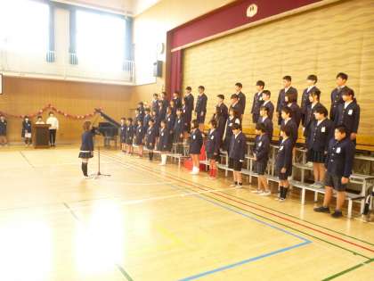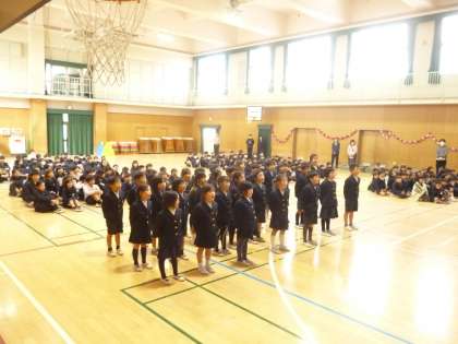 卒業を祝う会1 公開日 2025/03/07 更新日 2025/03/07 その他 3月7日(金)5時限目、「卒業を祝う会」がありました。花のアーチをくぐって、6年生が入場しました。 まずは、代表委員による「はじめの言葉」で幕を開けました。 そして、在校生から6年生へプレゼントです。「心のこもった呼びかけや歌、演奏」が贈られました。 1年生は、呼びかけと歌「きみとぼくのラララ」 いいね(0)