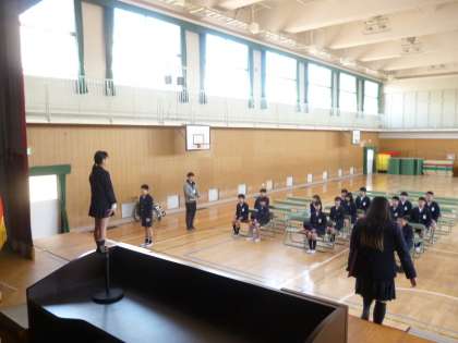 6年 卒業式の練習 公開日 2025/03/10 更新日 2025/03/10 6年 6年生が卒業式での卒業証書授与の練習をしました。舞台右手に立って名前が呼ばれてから、大きい声で返事し、将来の目標を宣言し、証書を受け取る練習です。立派な卒業式にしようと一所懸命練習に取り組んでいました。 いいね(0)