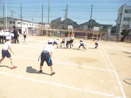 4年 タグラグビー 公開日 2025/03/10 更新日 2025/03/10 4年 4年生は体育科「タグラグビー」に取り組んでいました。まずは、準備体操代わりのしっぽ取りゲームです。運動場中を駆け回っていました。 いよいよタグラグビー開始です。攻撃側が駆け抜けるのが先か、守備側がしっぽを取って食い止めるか、熱戦が繰り広げられていました。 いいね(0)