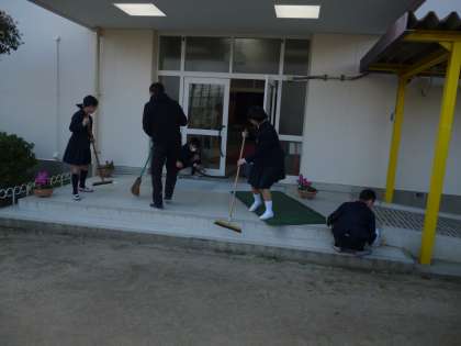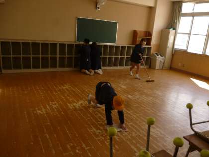 4月4日(金)、来週の入学式に向けて準備するために、新6年生が登校してきてくれました。まず式場の準備です。椅子・机並べなど、力仕事をがんばってくれました。次に、1年生教室や式場周辺、廊下・階段・トイレなどを分担して清掃くれました。「さすが、最高学年」と思える大活躍でした。