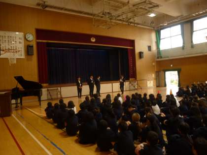 最後に、校歌を歌いました。元気で勢いのある歌声から、新年度への意欲が表れていました。