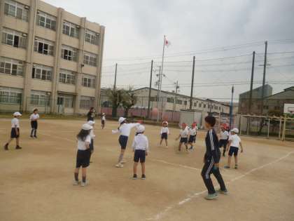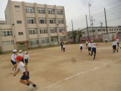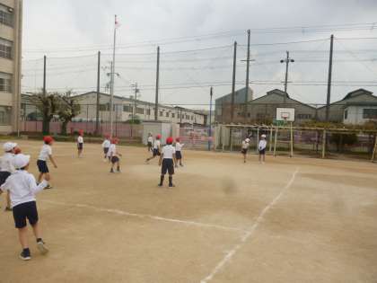2年生は体育科の時間に「ドッジボール」に取り組んでいました。入学して1年生になって、投げる力も受ける力も上達してきました。パスを使って、作戦を考えながら工夫する様子も見られました。