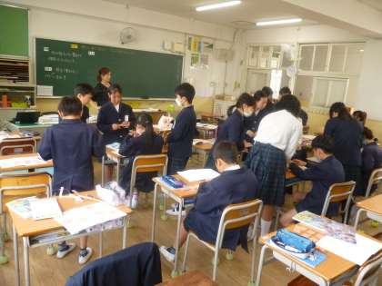 6年 対称な図形 公開日 2025/04/11 更新日 2025/04/11 6年 6年1組では算数科「対称な図形」を学習しています。6種類の形があります。形の特徴を考えて、仲間分けします。折ったり重ねたり回したりしながら、特徴を捉えていきます。 次は、近くの人と考え方を交流します。コミュニケーションが大切なようです。 いいね(0)
