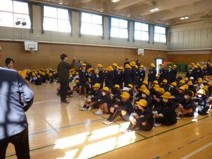 4月15日(火)火災を想定した避難訓練を実施しました。実際に防火扉や防火シャッターを閉めた状況で避難しました。避難場所も運動場から体育館へ変更になりました。いつもと違う状況で、先生の指示をしっかり聞いて訓練することができました。