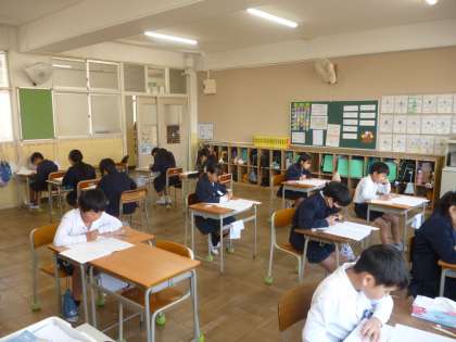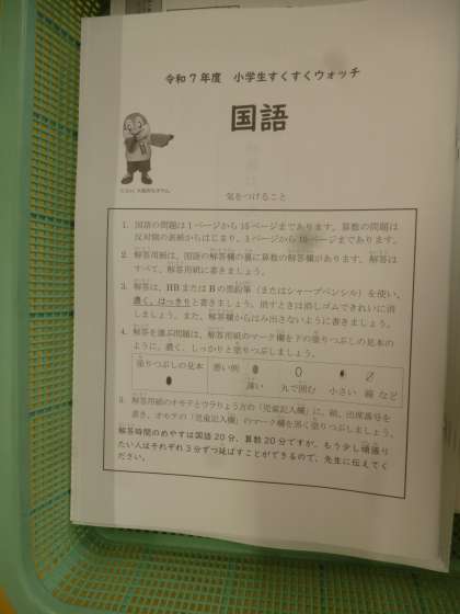 4月17日(木)、5年生はすくすくウォッチに取り組みました。1時限目前半は国語、後半は算数を受けました。基礎的な力だけではなく、文章を読み取る力など総合的な力が問われます。普段のテストに比べて問題数も多いですが、粘り強くがんばっていました。