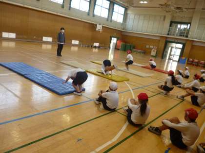 6年 走の運動、マット運動 公開日 2025/04/24 更新日 2025/04/24 6年 6年生は体育科の時間、1組は走の運動に取り組んでいました。小刻みに進んだり戻ったり俊敏性を養う運動、駆け足跳びで走る運動などをしていました。 2組はマット運動に取り組んでいました。以前に習った動きを思い出していました。 いいね(0)