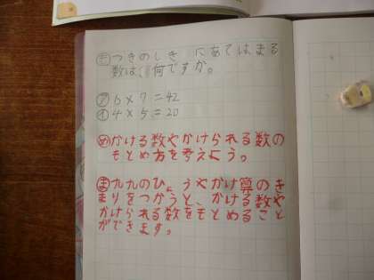 3年 かけ算のきまりを見つけよう 公開日 2025/04/24 更新日 2025/04/24 3年 3年2組では算数科の時間に「6×□=42」「□×5=20」で、□に当てはまる数の求め方を考えていました。九九の表を利用したり、6の段、5の段を使ったりしたら求められるようです。続いて、練習問題を解いていました、 いいね(0)