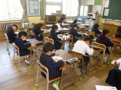 3年 ことば力UP 公開日 2025/04/24 更新日 2025/04/24 3年 3年1組では漢字ドリル「ことば力UP」問題に取り組んでいました。第1問は「しょもつ」です。早速、「書」の書き順と横画の長さに気をつけなければいけません。 このあと「どうぶつ」「せいぶつ」「ものがたり」と「物」を使った言葉が並びます。「物」を使った「ことば力」はUPしたでしょうか。 いいね(0)