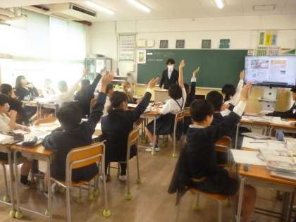 写真は6年生は社会科「日本国憲法と政治のしくみ」の様子です。