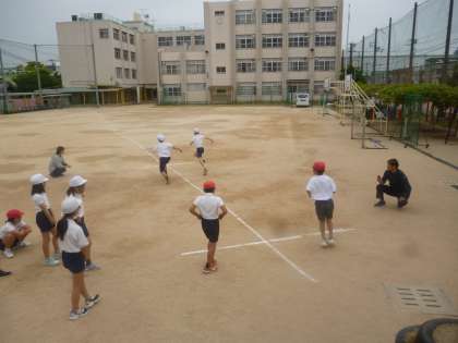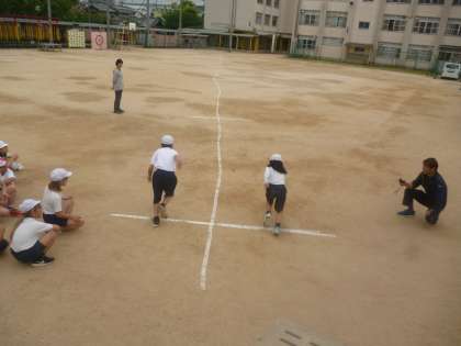 5年 走の運動2 公開日 2025/04/28 更新日 2025/04/28 5年 次は、スタートから5m先にゴールラインが引かれました。50m走のような短距離走ではスタートが大切です。5m走をして、全速力でスタートダッシュする練習をします。 距離は短いですがそれだけ力も出てくるようです。 いいね(0)