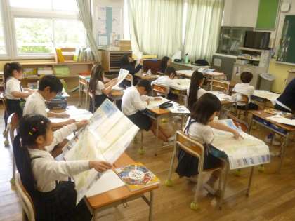 3年 大阪市はどんな場所? 公開日 2025/05/07 更新日 2025/05/07 3年 3年2組では社会科「わたしたちの大阪市」を学習します。大阪市はどんな場所なのか、出し合っていました。有名なのは「USJ」「大阪城」……。次は、大阪市に区がいくつあるのかを調べます。大阪市の絵地図を広げて数えていました。 明後日の社会見学で西日本一高い建物ハルカスの上から大阪市全体を見下ろします。楽しみです、 いいね(0)