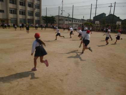 児童集会 公開日 2025/05/15 更新日 2025/05/15 その他 5月15日(木)児童集会では「コンセント鬼ごっこ」をしました。鬼にタッチされたら、両手を腰に当てて、腕で輪を作ります。腕でつくった輪に、仲間が両手を入れてもらうと復活します。(コンセントにプラグを差し込むように)朝から日差しが強く気温が高かったですが、みんな元気に走り回っていました。 集会委員の皆さん、ありがとうございました。 いいね(0)