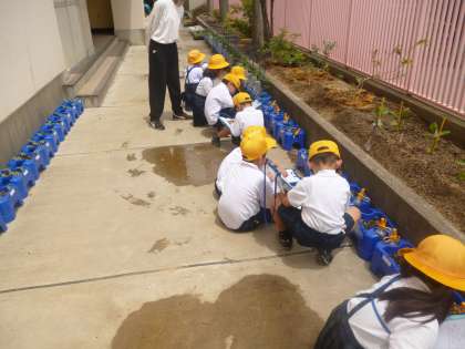 1年 アサガオの観察 公開日 2025/05/19 更新日 2025/05/19 1年 1年2組では生活科の時間にアサガオの観察に取り組んでいました。この時期、ちょうど双葉が開いたところです。双葉の形をうまく描けたでしょうか。。 その後、色や手触りなど、気がついたことを文で記録していました。ひらがなを習ったばかりですが、一所懸命書いていました。 いいね(0)