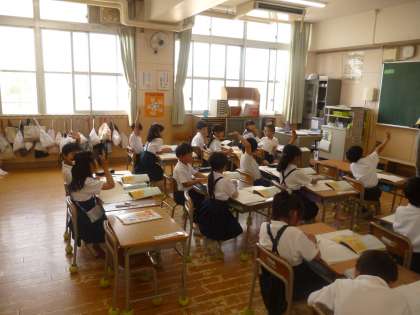 1年2組では国語科「とん こと とん」を学習していました。ネズミさんの家の床下から音がします。これが何の音なのか、読み取っていました。挿絵も大きなヒントになったようです。