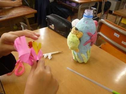 3年 身近な材料を使って 公開日 2025/05/29 更新日 2025/05/29 3年 3年2組では図画工作科「身近な材料を使って」に取り組んでいます。前時までにペットボトルと紙粘土を使って、素敵な花瓶ができています。本時ではその花瓶に生ける花を作っていました。素敵な花ができ上がっていきました。 ※子どもたちの様子が撮れていなくて申し訳ありませんでした。 いいね(0)