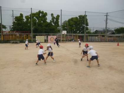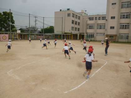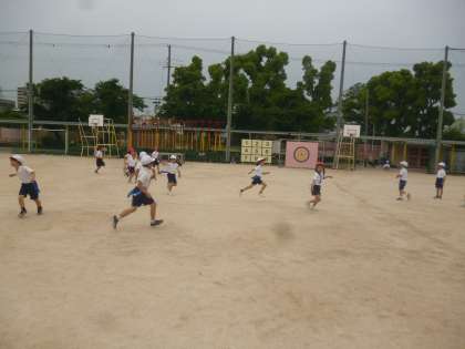2年 しっぽとり 公開日 2025/05/29 更新日 2025/05/29 2年 2年生は体育科「おにあそび」に取り組んでいます。今回は腰に2つのリボンをつけて「しっぽとり」をしていました。相手のしっぽを取るのに夢中になり過ぎると、後ろからそっと近づかれて自分のしっぽがとられた……、なんて場面もありました。 いいね(0)