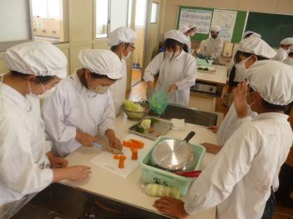 6年 調理実習1 公開日 2025/06/06 更新日 2025/06/06 6年 6年生は家庭科の時間に「野菜炒め」作りに取り組んでいました。食材を洗う人、切る人など、グループで分担して調理を始めました。 いいね(0)