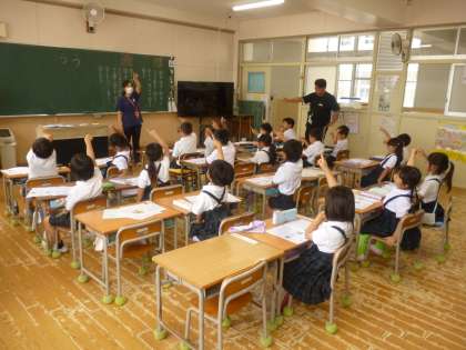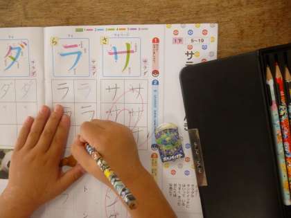 1年 「サ」「ラ」 公開日 2025/06/09 更新日 2025/06/09 1年 1年1組では国語科の時間に「サ」「ラ」を習っていました。すでに学習した「サラダで げんき」で何度も登場したカタカナなので、どちらの字も慣れているようでした。「サッカー」「ライオン」……、「サ」や「ラ」を使った言葉を。とてもたくさん発表していました。 いいね(0)