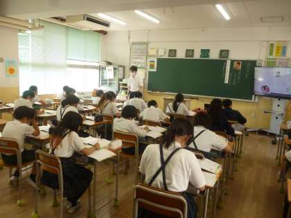 写真は、6年生道徳科「命のアサガオ」の様子です。