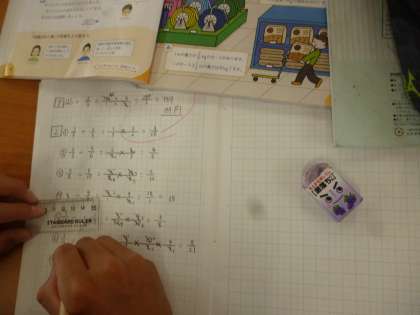 6年 分数のわり算 公開日 2025/06/17 更新日 2025/06/17 6年 6年2組では算数科「分数のわり算」のまとめの問題に取り組んでいました。計算問題を解くことについては、力がついてきたようです。文章問題については考えにくいようで、 線分図をもとに考えていました。 いいね(0)