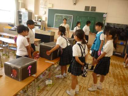 たてわり班活動「つるまち万博」1 公開日 2025/06/19 更新日 2025/06/19 その他 6月19日(木)ついに待ちに待った「つるまち万博」が始まりました。みんなで協力し合って楽しんでほしいと思います。写真は、「ブラックボックス」「記憶力ゲーム」「コイン落とし」の様子です。 いいね(0)