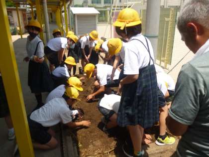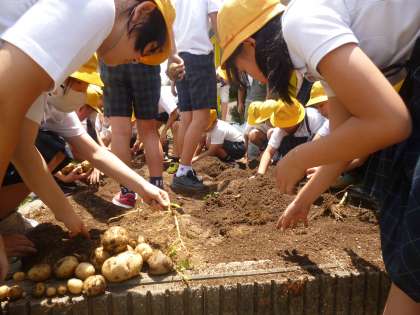 続いて6年2組児童がジャガイモの収穫をしました。思った以上にたくさんとれたので、みんな嬉しそうでした。