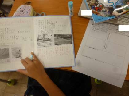 5年 地形や気候を活かした人々のくらし 公開日 2025/06/26 更新日 2025/06/26 5年 5年2組では社会科の時間に、沖縄と岐阜県海津市で、人々のくらしの違いをまとめていました。「1年中温暖な気候」「堤防に囲まれた低地、輪中」人々は、このような地形や気候をどのように活かしていたのでしょうか。以前学習したノートを見返していました。 いいね(0)