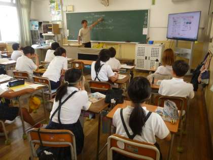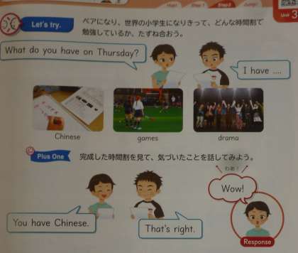 5年 各曜日の時間割をたずね合おう 公開日 2025/07/04 更新日 2025/07/04 5年 5年1組では英語科「各曜日の時間割をたずね合おう」に取り組んでいました。「What do you have on Friday?」「I have Japanese.」のような受け答えの練習をします。「math」「subject」など、子どもたちは教科名を英語で表すのは習得しているようです。 では、時間割を見ながら受け答えを練習します。 いいね(0)